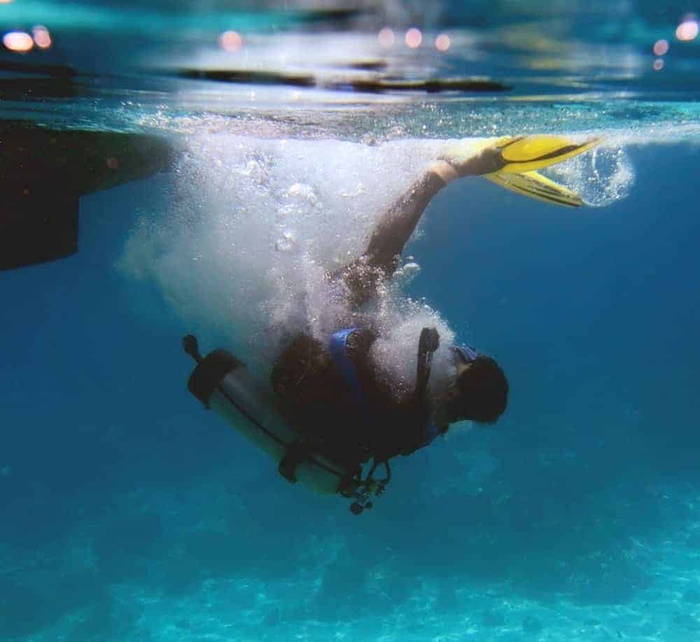 Epic scuba fails happen all the time. Learning how not to enter the water sometimes comes at others’ expense. Mostly it’s purely comedic without any consequences. Waves can be big and cliffs can be steep and slippery. Boat entries, too can be tricky when standing in fins with scuba gear, bobbing up and down waiting to take the plunge.